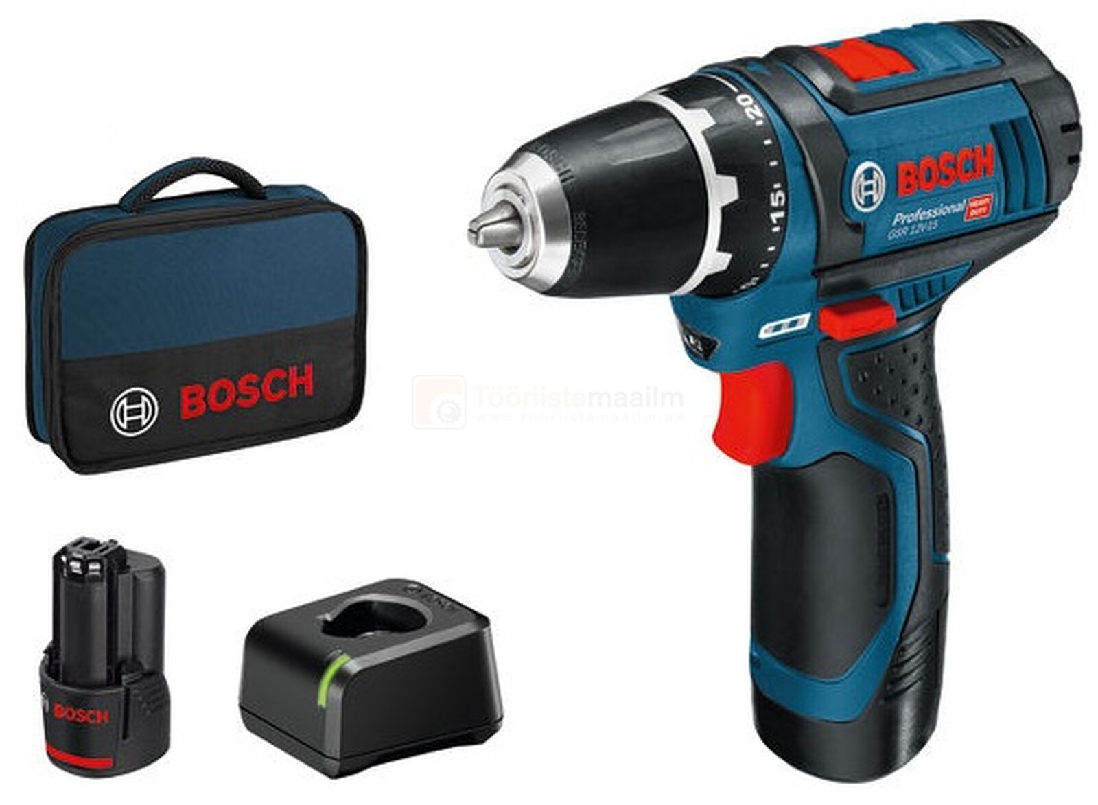 Akutrell Bosch GSR 12V-15 - 2 x 2,0 Ah akud + kandekott