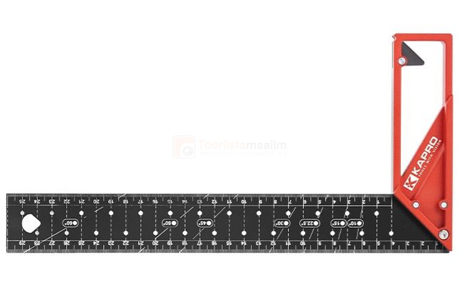 Käepidemes olev märgistusrant võimaldab täpset joone märkimist. Joonlaua igal sentimeetril (või poole tolli tagant) paiknevad avad võimaldavad kiiret ja sujuvat pliiatsiga märkimist otse tööpinnale. Lõpuks muudab riputusava tööriista hõlpsasti hoiustatavaks ja alati kättesaadavaks.