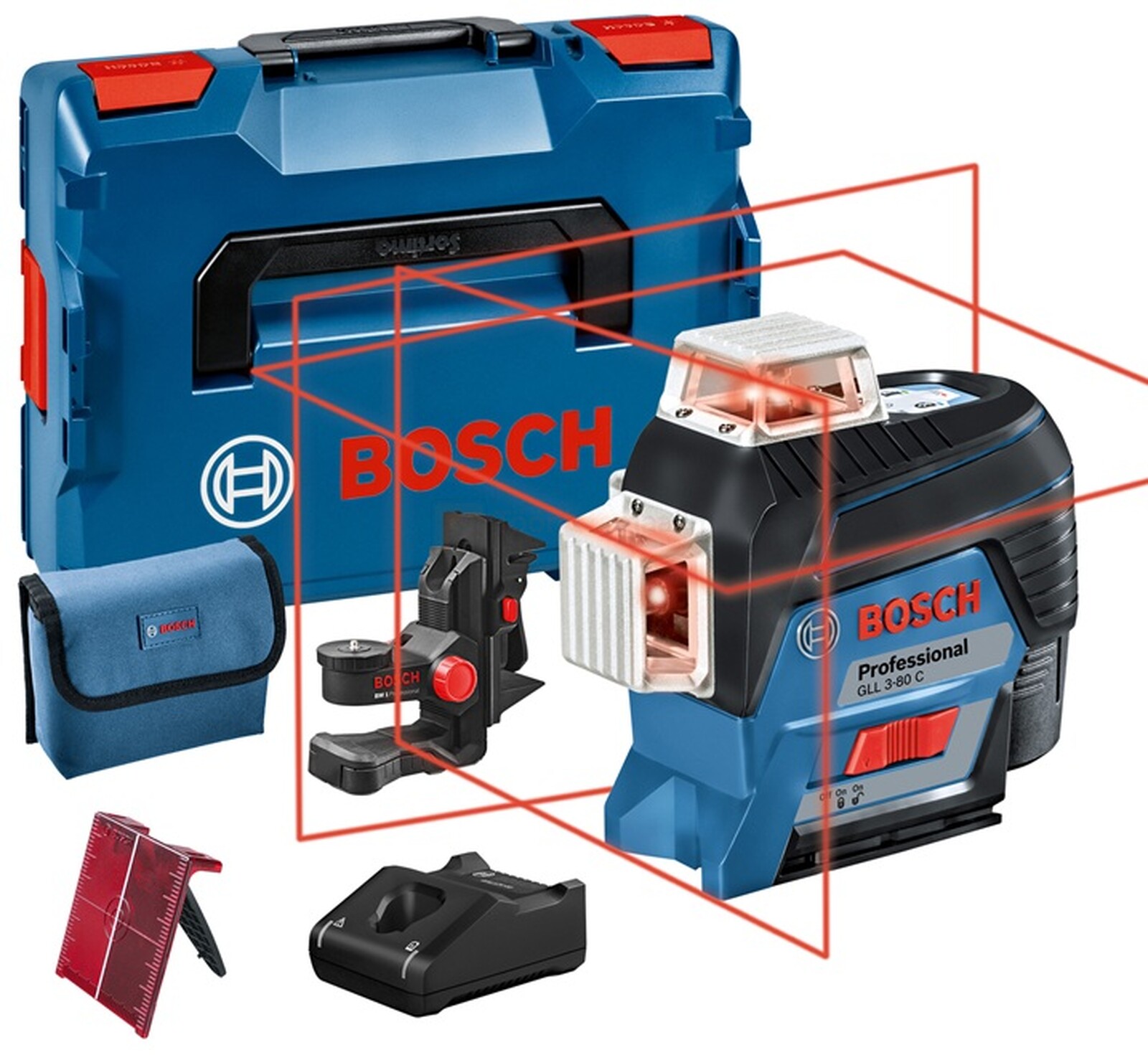 Линейный лазер Bosch GLL 3-80 C (1 x 2,0 Ah) + L-Boxx + крепежная оснастка BM 1